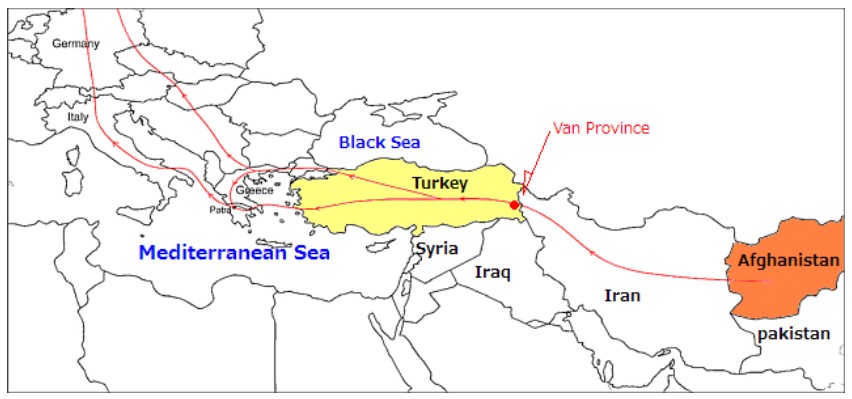 『アメリカ軍の撤退に伴い治安が悪化しているアフガニスタンから密入国する難民refugees from afghanが相次いでいることを受け、トルコ当局はイラン、及びイラクとの国境に壁や監視塔、灯光器、無線センサーなどの建設を進めていているが、トルコ東部のワン県Van Provinceでは2021年7月17日から18日にかけてあわせて130人あまりのアフガニスタンからの密入国者が相次いで拘束された。
