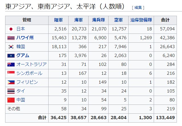 ドイツを中心としたヨーロッパの陸軍の大規模削減、ブルガリアやルーマニアで初めて旧東側ブロックに上述のFOSである米軍基地が置かれるなど重要な変化があるが、ここではアジア・太平洋における注目すべき変化を概観しておく。