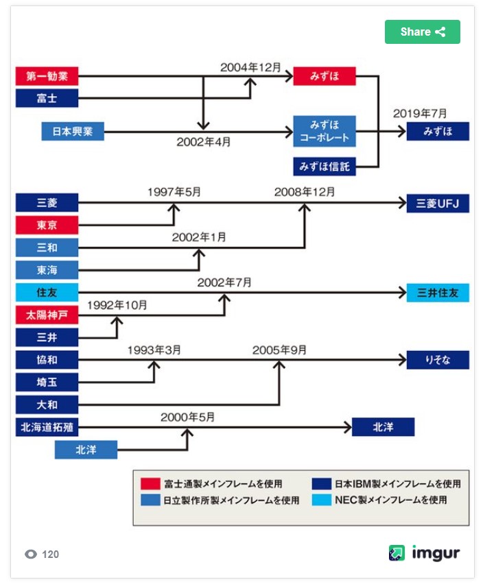 ※ しかし、みずほの場合、それが「できなかった」らしく、「基幹勘定系システム」をそれぞれ残した…。