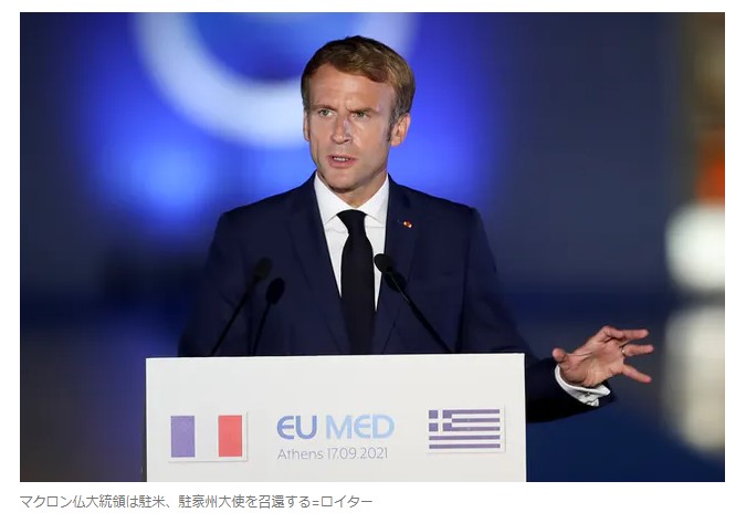 ルドリアン仏外相が「マクロン大統領の指示で、協議のためにただちに2大使を呼び戻すことにした」との声明を発表した。召還の期間は示していない。「同盟や、インド太平洋地域の重要性を巡る我々の考え方にも影響を与える」などとして、米英豪との同盟関係に悪影響を与える可能性を示した。