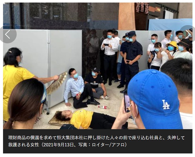 ネットに流れる動画や写真をみると、群衆は、元金返金や建設再開を求めて、怒り、泣き叫び、企業関係者に詰め寄ったり、ガードマンともみ合ったり、興奮して失神したりしていた。ビルから飛び降りようとする社員もいた。恒大社員の中には、企業ノルマのために自分で自社の理財商品を購入していた者も多くいたのだ。年利7%をうたい文句にしていた理財商品は、もはや元本すら返ってくる可能性も薄い。まさに絶望と阿鼻叫喚の「取り付け騒ぎ」だ。こうした騒ぎが、これから全国に波及するかもしれない、と国内外のチャイナウォッチャーたちが固唾をのんで見守っている。