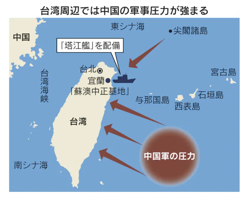 台湾北東部の海軍基地に新型の軍艦を配備した背景には、台湾東部で動きを活発化させる中国軍への警戒感がある。