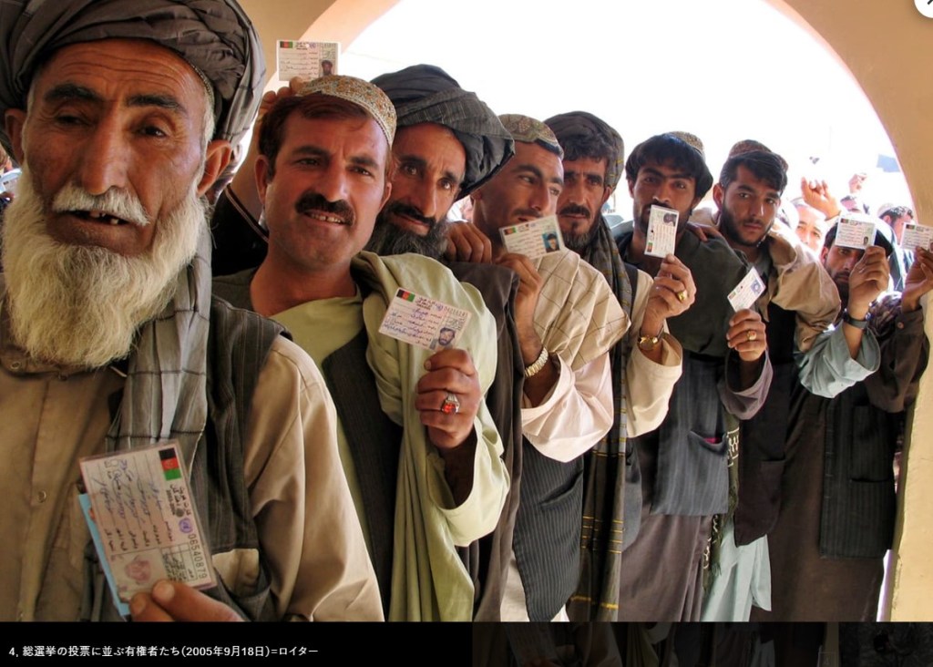 米国が後ろ盾である移行政権のもと、憲法を制定し、新たな国造りが進むアフガニスタン。初めての大統領選では移行政権のカルザイ大統領が当選。初の総選挙なども実施された。 ただ、政情不安は続く。タリバンなどの武装勢力がアフガニスタン南部で蜂起し、徐々に勢力を広げる。治安は悪化し、テロは頻発した。』