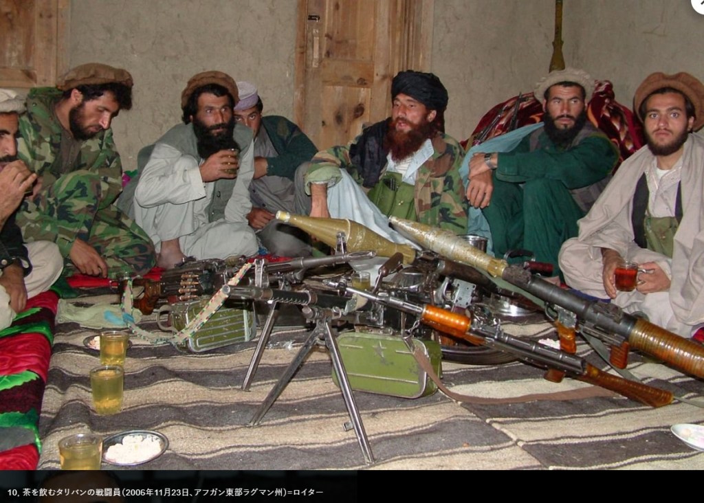 10, 茶を飲むタリバンの戦闘員(2006年11月23日、アフガン東部ラグマン州)=ロイタ 』