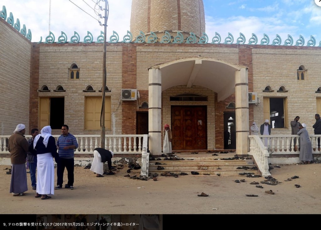9, テロの襲撃を受けたモスク(2017年11月25日、エジプト・シナイ半島)=ロイター