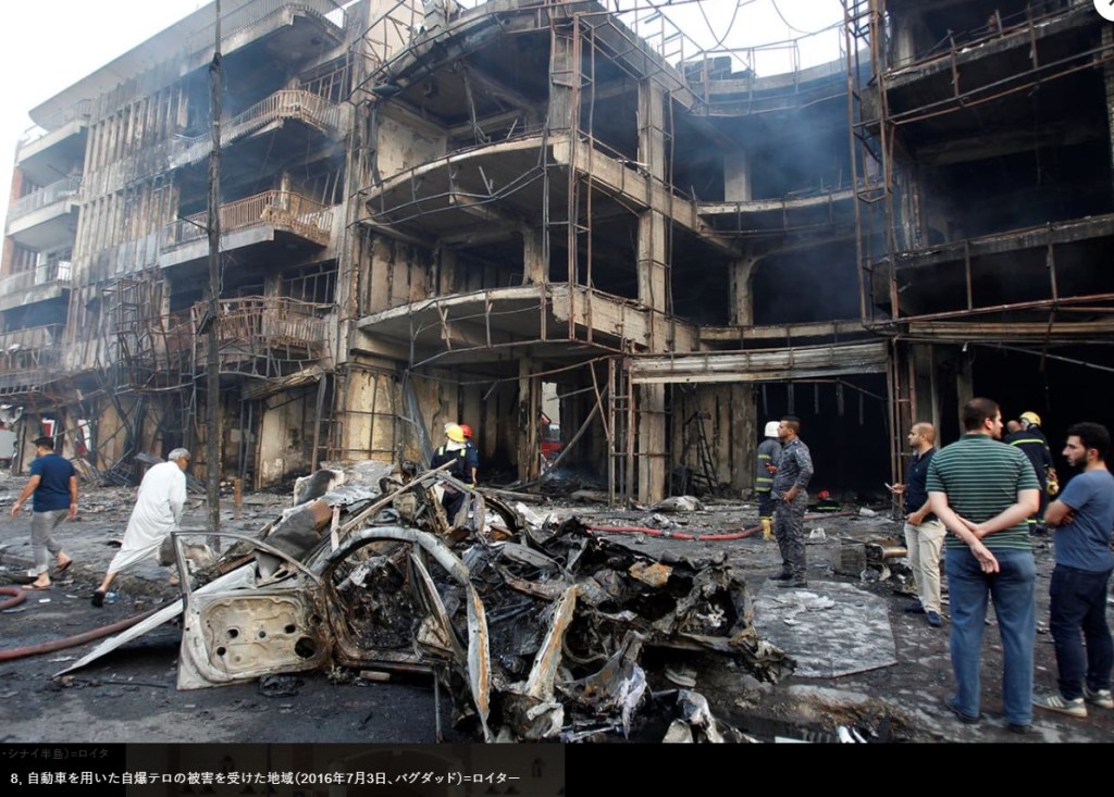 8, 自動車を用いた自爆テロの被害を受けた地域(2016年7月3日、バグダッド)=ロイター