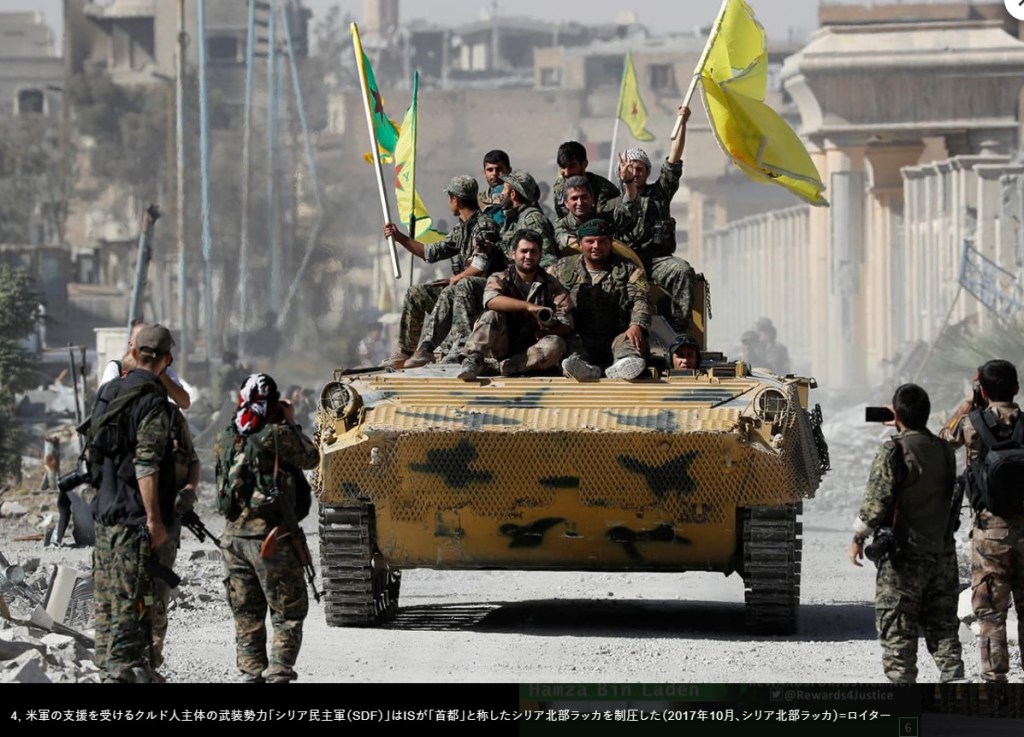 4, 米軍の支援を受けるクルド人主体の武装勢力「シリア民主軍(SDF)」はISが「首都」と称したシリア北部ラッカを制圧した(2017年10月、シリア北部ラッカ)=ロイター