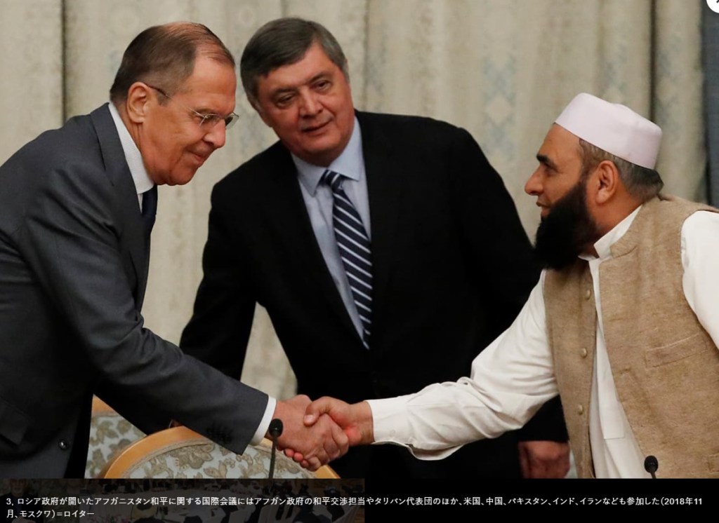 3, ロシア政府が開いたアフガニスタン和平に関する国際会議にはアフガン政府の和平交渉担当やタリバン代表団のほか、米国、中国、パキスタン、インド、イランなども参加した(2018年11月、モスクワ)=ロイター