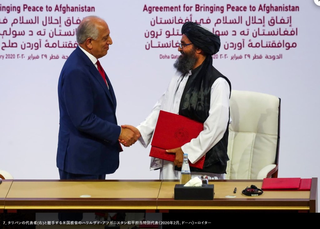 2020年2月、米国とタリバンはアフガンからの米軍完全撤収とタリバン関係者への米制裁解除を検討するとした和平合意に署名した。同年9月にはアフガン政府とタリバンが初の直接交渉にこぎつけた。タリバンは国際的な存在感を高めると同時にアフガン国内で攻勢を強めていく。』