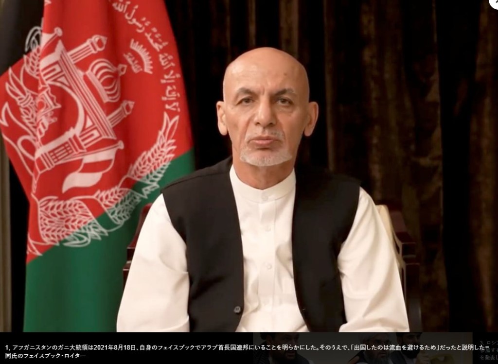 『1, アフガニスタンのガニ大統領は2021年8月18日、自身のフェイスブックでアラブ首長国連邦にいることを明らかにした。そのうえで、「出国したのは流血を避けるため」だったと説明した=同氏のフェイスブック・ロイター