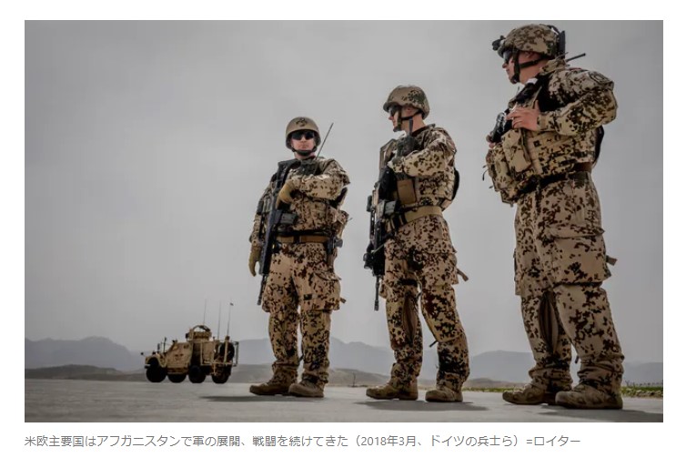 米欧主要国はアフガニスタンで軍の展開、戦闘を続けてきた(2018年3月、ドイツの兵士ら)=ロイター