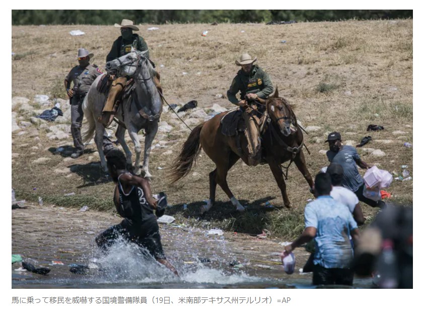米国内では、国境の川を渡って米国側に入ろうとした人々に対し、馬に乗った国境警備隊員が手綱を振り回して威嚇している映像や画像が拡散した。与党・民主党の上院トップであるシューマー院内総務は21日、「罪のない人々に対する恐ろしい扱いはすぐにやめなければならない」とバイデン政権の対応を批判した。