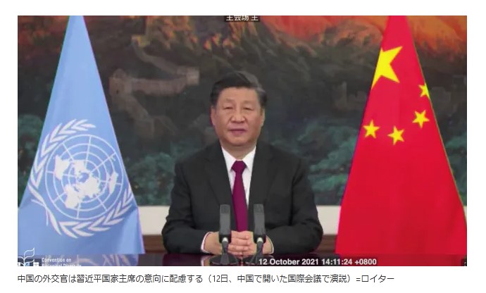中国の外交官は習近平国家主席の意向に配慮する(12日、中国で開いた国際会議で演説)=ロイター