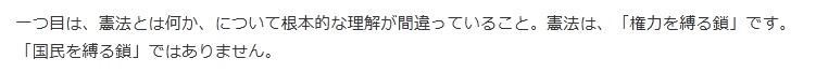 「立憲民主党はネットやツイッターに出ているとがった意見を見すぎだ。そこに平均値はない。世論はどういう構造で、有権者がどう考えているのか、政策をどう訴えなければならないのか考え、最重要争点で十分競争相手になるという信頼を勝ち取る必要がある。立憲民主党は、権力の私物化を許さないと自民党を批判するが、権力の私物化が起こるのは政権交代の可能性がないと思われているからだ。若い人たちから選択の機会を奪ってはいけない」
