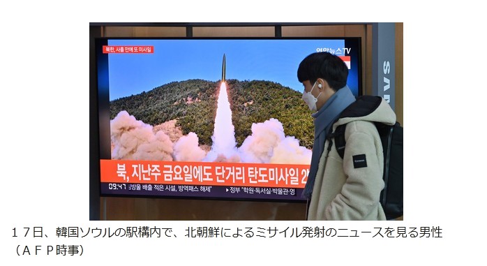 A woman walks past a television screen showing a news broadcast with file footage of a North Korean missile test, at a railway station in Seoul on January 17, 2022 [Jung Yeon-je /AFP]