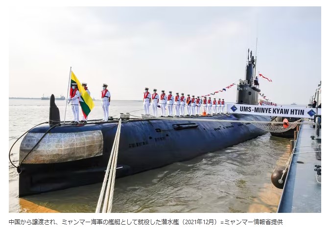 中国海軍は同12月24日、中古の潜水艦をミャンマーに無償譲渡した。ミャンマー海軍にとっては2隻目の潜水艦で、国軍トップのミンアウンフライン総司令官自ら、同日の就役式に出席した。