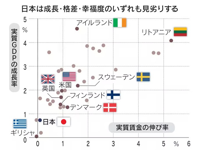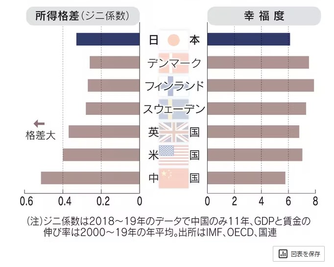 混沌とする世界で日本は生き残れるのか。現状は心もとない。GDP成長率は年平均0.7%と北欧を下回るのに、ジニ係数は0.33と北欧より高く、幸福度は低い。