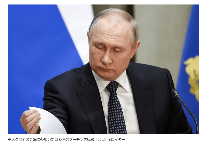 モスクワでの会議に参加したロシアのプーチン大統領(25日)=ロイター