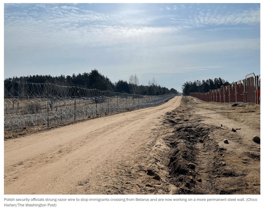 今日の 午後10時EDT ポーランドの治安当局は、ベラルーシからの移民の通過を阻止するためにかみそりの針金を張っており、現在、より恒久的な鋼の壁に取り組んでいます。(チコハーラン/ワシントンポスト)