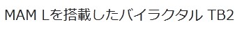 バイラクタル TB2は、主翼下の4ヶ所のハードポイントに合計150kgのミサイルや誘導爆弾、ロケット弾で武装することができ、TAI/アグスタウェストランド T129 ATAKにも武装できるUMTAS(英語版)は射程8kmの対戦車ミサイルでバイラクタル TB2に搭載した場合、高度16000フィートからの攻撃もできる。レーザー誘導爆弾であるMAMは滑空爆弾であり、C型は射程8km、L型は射程が8km~14kmとなっている。T型は重さが94kgとなり1発しか装備できないが射程は30km~80kmとなり、中距離対空兵器からのアウトレンジ攻撃も可能になっている。その他にもレーザー誘導ロケット弾であるRoketsan Cirit(英語版)等を装備することができる。 』