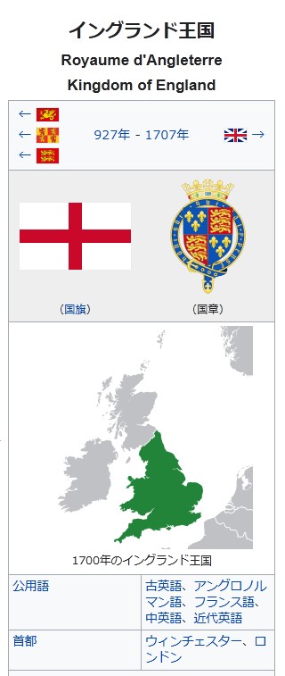 イングランド王国https://ja.wikipedia.org/wiki/%E3%82%A4%E3%83%B3%E3%82%B0%E3%83%A9%E3%83%B3%E3%83%89%E7%8E%8B%E5%9B%BD
