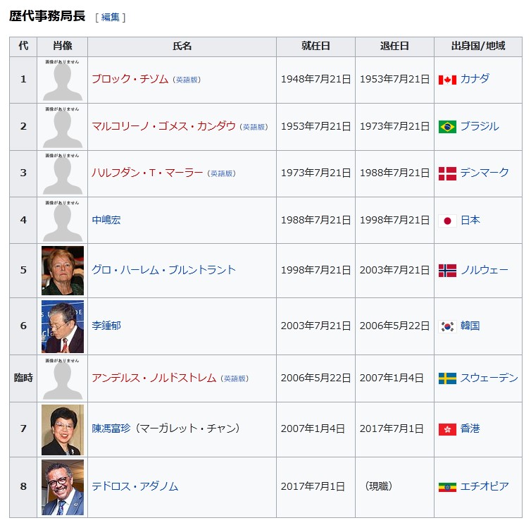 3 Replace this image JA.svg ハルフダン・T・マーラー(英語版) 1973年7月21日 1988年7月21日 デンマーク