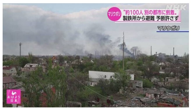 この前日の5月1日には、およそ100人が製鉄所から避難し、ゼレンスキー大統領は、2日も避難が行われる予定だとしていましたが、マリウポリでロシア軍と抗戦を続けている部隊の担当者は、現地テレビ局のインタビューで「製鉄所から最初の市民が避難し終わると、ロシア軍はあらゆる武器を使って攻撃を再開した」と述べていました。