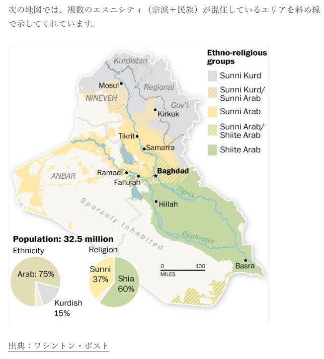 ※ スンニ派とシーア派の宗派対立だけでなく、アラブ人とクルド人の民族対立まであるわけだ…。