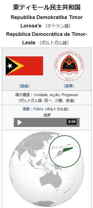東ティモールhttps://ja.wikipedia.org/wiki/%E6%9D%B1%E3%83%86%E3%82%A3%E3%83%A2%E3%83%BC%E3%83%AB