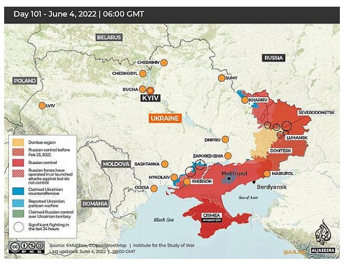 『ロシアのウラジーミル・プーチン大統領Russia’s President Vladimir Putin はウクライナに侵攻することで「歴史的かつ根本的な誤り」を犯し、ロシアは今「孤立」していると、エマニュエル・マクロン大統領は述べ、フランスのメディアとのインタビューで、一方ロシアには「戦闘を停止した際には屈辱的な対応をせず、外交手段によって出口を切り開く余地を与えるようにすべきだ」と2022年6月3日金曜日に繰り返した。