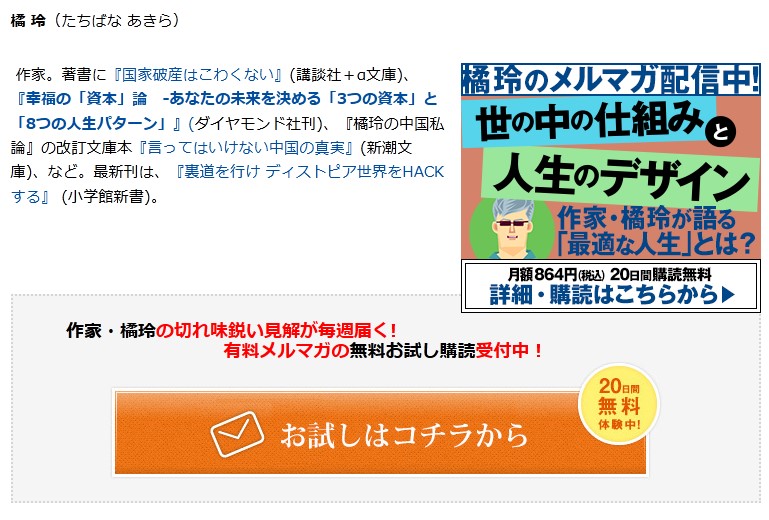 橘玲のメルマガ 世の中の仕組みと人生のデザイン 配信中