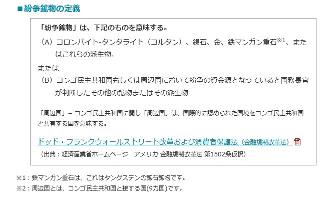 (出典:経済産業省 米証券取引委員会(SEC)による紛争鉱物開示規制に関する最終規則(仮訳・部分抜粋))