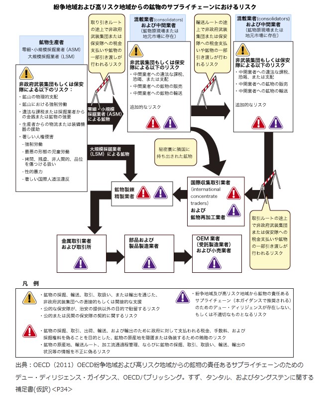 出典:OECD(2011)OECD紛争地域および高リスク地域からの鉱物の責任あるサプライチェーンのためのデュー・ディリジェンス・ガイダンス、OECDパブリッシング。すず、タンタル、およびタングステンに関する補足書(仮訳)<P34>
