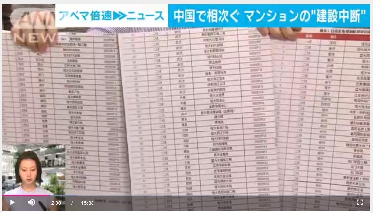 ※ 建設が止まっている都市名、建設会社名、ローンの支払いを止めての抗議行動が生じたリストだそうだ…。