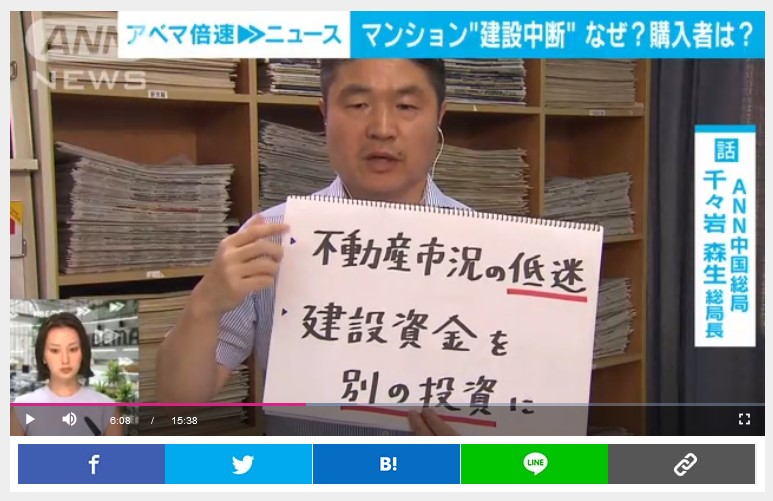 ※ 『中国で、マンションの建設中断が相次いでいる問題について、実際に現場を取材したANN中国総局の千々岩総局長が解説します。』