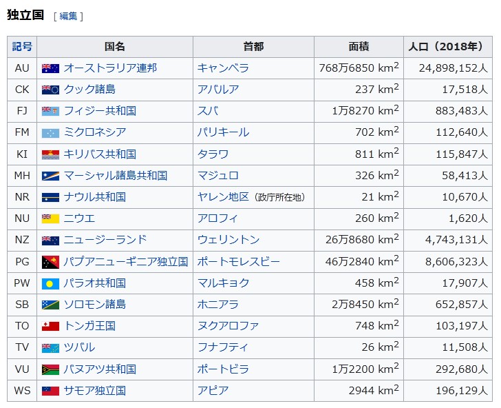 オセアニア諸国(※ 省略。)』