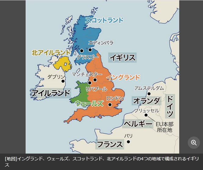 図3:英国の地域分布図 英国はスコットランド(ブリテン島北部)、北アイルランド(アイルランド島東北部)、ウェールズ(ブリテン島西部)、イングランド(ブリテン島南部)の4つの地方から構成されている。また、イングランドは、北から北東イングランド、北西イングランド、ヨークシャー&ハンバーサイド、東ミッドランド、西ミッドランド、東イングランド、大ロンドン市、南東イングランド、南西イングランドの9地域により構成されている。
