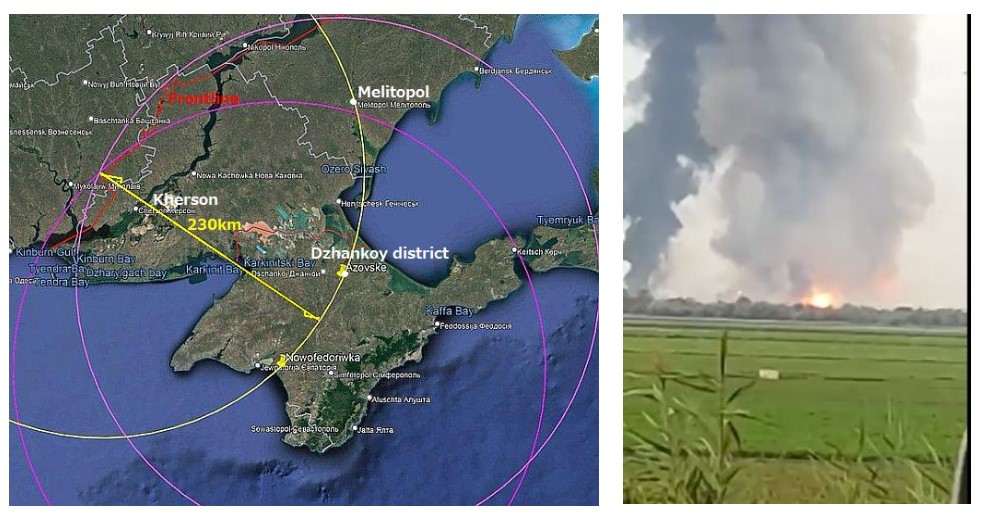 ロシア軍が事件の真相を発表できないのはこのためだという。この破壊活動は雇員たちがウクライナ軍特殊部隊と連携した「パルチザン活動」とみられる。この事件に続いて、同様のパルチザン活動の可能性があると思われる事件もすでに起きた。隣国ベラルーシ南部ゴメリ州のジャブロフカ空軍基地付近でも2022年8月11日未明に複数の爆発があった。この事件でも詳しい発表はない。いずれにしても今後、クリミアを含めた各地のロシア軍基地で同様のパルチザン攻撃が波状的に起こるかどうかが焦点となる。』