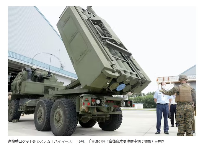 高機動ロケット砲システム「ハイマース」(6月、千葉県の陸上自衛隊木更津駐屯地で撮影)=共同