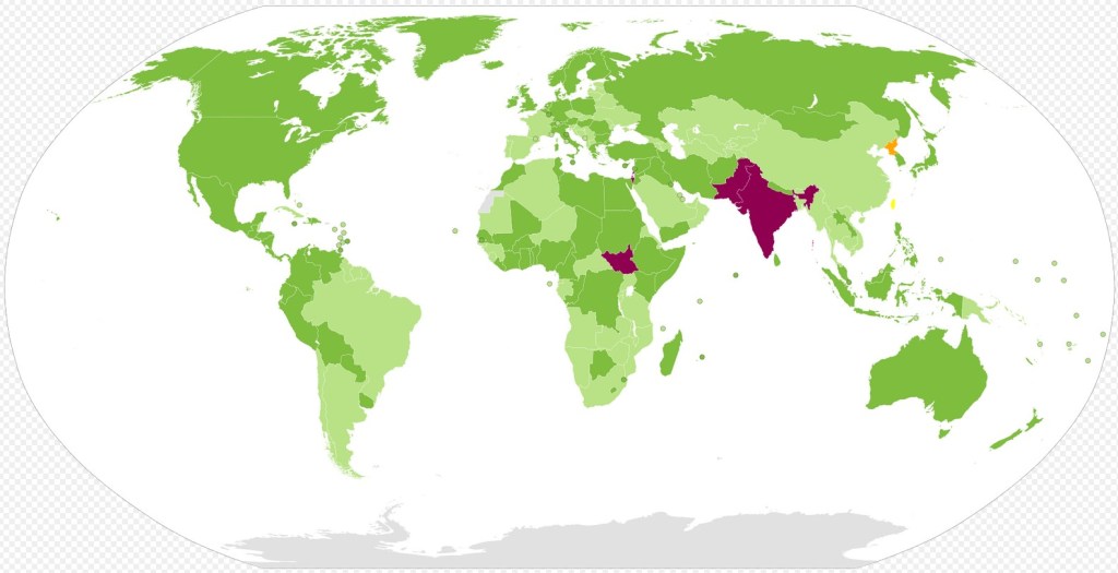未加盟国はインド・パキスタン・イスラエル・南スーダンの4ヶ国である。なおインドとパキスタンは条約が制定時の5ヶ国の核保有国にのみ保有の特権を認め、それ以外の国々には保有を禁止する不平等条約であると主張し、批准を拒否している。