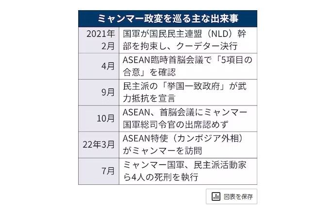 ミャンマー国軍により設立された国家行政評議会はNUGを違法であると宣言しており[2]、NUGのメンバーのほとんどは国内の少数民族武装勢力の支配地域で身を隠しているか国外亡命中である[3][4][5][6][7][8][9]。
