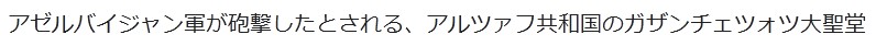 アゼルバイジャン軍が砲撃したとされる、アルツァフ共和国のガザンチェツォツ大聖堂