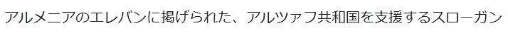 アルメニアのエレバンに掲げられた、アルツァフ共和国を支援するスローガン