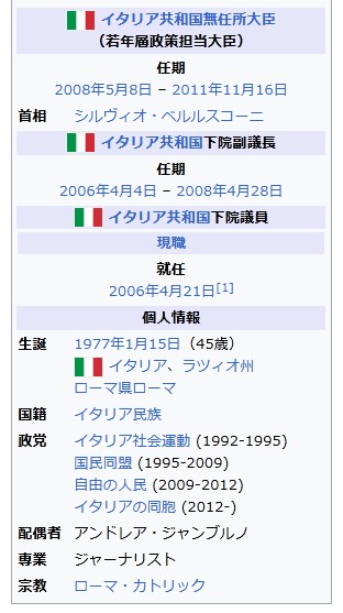 ^ “Page on Meloni at Chamber of Deputies website (Italian).”. 2015年12月13日閲覧。
