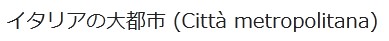 大都市(Città metropolitana)は、2019年現在14ある。なお、自治体名 Città metropolitana di xxx の訳語としては 「○○大都市」[注釈 3]、 Città metropolitana di Roma Capitale の訳語としては 「首都ローマ大都市」[5]とする例がある。