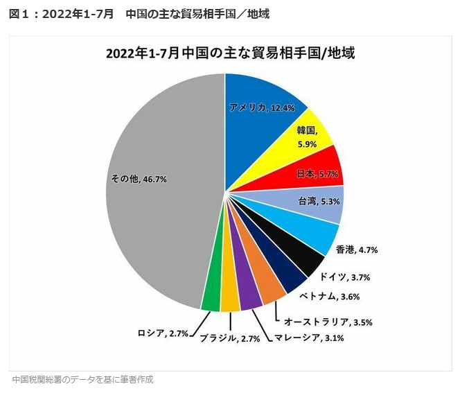 図1:2022年1-7月 中国の主な貿易相手国/地域