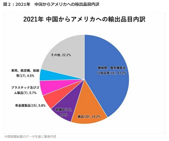 図2:2021年 中国からアメリカへの輸出品目内訳