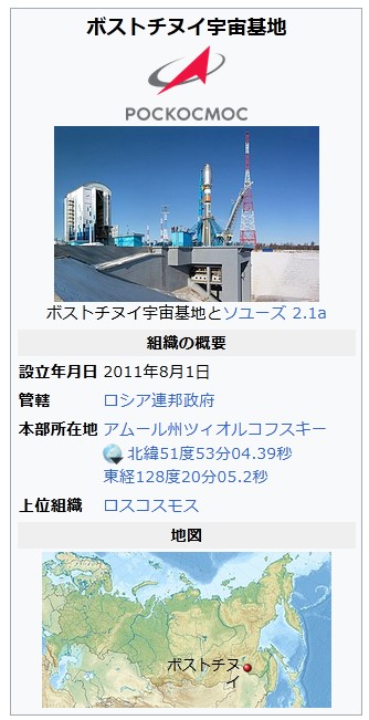 『ボストチヌイ宇宙基地(ボストチヌイうちゅうきち、ロシア語: Космодром Восточный、英語: Vostochny Cosmodrome)は、ロシア連邦が極東ロシアで運用する宇宙ロケットの発射場である。』