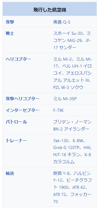 「ミャンマー空軍 – 物語の歴史」 . エアロフライト。2013 年 12 月 14 日にオリジナルからアーカイブされました。2013年 12 月 15 日閲覧。 国際戦略研究所(2021 年 2 月). ミリタリー バランス 2021 . ルートレッジ。pp.285–287。ISBN 978-1032012278. 「Flightglobal – 世界空軍 2015」(PDF) . フライトグローバル.com。2014 年 12 月 19 日にオリジナルからアーカイブ(PDF)されました。2015年 6 月 15 日閲覧。 Myoe, Maung Aung: 国軍の建設 「緊急事態における人道的な民軍調整: 予測可能なモデルに向けて」(PDF) . アジア太平洋地域の人道的民軍調整に関する地域諮問グループ。2017. pp. 79–82 . 2019年6月6日閲覧。 「サガイン村でのミャンマー軍による空爆で 70 人以上の民間人が閉じ込められた」 . イラワディ。2022 年 8 月 12 日。 「冷戦中およびその後の侵入、上空飛行、撃墜、および亡命.」 Wayback Machine myplace.frontier.comで 2013 年 5 月 14 日に取得日: 2013 年 5 月 28 日。 [ミャンマーで] 「3 人のビルマ空軍兵が東南アジアでの最初の空戦で戦う」 . 2017 年 10 月 19 日。 「MiG-21 2000 戦闘機地上攻撃、ロシア.」 Airforce-Technology.com。取得日: 2010 年 12 月 1 日。 「ミャンマーMiG-29のアップグレードが明らかに」 . ainonline.com . 2019年4月3日閲覧。 「ロシア、ビルマが武器協定に署名」 . 2009 年 12 月 23 日。 2018 年 4 月 9 日に元の場所からアーカイブされました。2018年4月9日閲覧。 「パキスタン、ミャンマーとの JF-17 協定を一時停止 – The Morning Mail」 . 2018 年 8 月 26 日にオリジナルからアーカイブされました。2018年8月26日閲覧。 「ロシアがミャンマー向けのSu-30SMの組み立てを開始」 . http://www.defenseworld.net 。2019年10月4日閲覧。 IndraStra グローバル編集チーム (2020 年 10 月 30 日). 「ミャンマー統合防空システム」 . 2020 年 10 月 31 日にオリジナルからアーカイブされました。2015年12月7日閲覧。 「ミャンマーはロシアの Su-30 戦闘機 2 機を受け取る」 . dhakatribune.com . 2022年9月3日閲覧。 World Air Forces 2022″ . フライトグローバル インサイト。2022 . 2022年1月5日閲覧。 「ミャンマー空軍が新しい航空機を導入」 . Janes.com . 2021年12月20日閲覧。 Beech, Hannah (24 December 2021). “Worldly, Charming, and Quietly Equipping a Brutal Military” – via NYTimes.com. “Is Myanmar Using Armed Chinese Drones For Counterinsurgency?”. thediplomat.com. 2016. Retrieved 10 July 2020. Weinberger (Foreign Policy), Sharon (10 May 2018). “China Has Already Won the Drone Wars”. Archived from the original on 22 October 2020. {{cite web}}: |last= has generic name (help) United Nations Human Right Office of the High Commissioner, OHCHR (August 2019). “Arms and Military Equipment Suppliers to the Tatmadaw” (PDF). United Nations. Archived (PDF) from the original on 23 October 2020. “SIPRI Trade Register”. Stockholm International Peace Research Institute. “Arms Transfers Database”. Stockholm International Peace Research Institute. Retrieved 7 October 2021. IndraStra Global Editorial Team (30 October 2020). “Myanmar Integrated Air Defense System”. Archived from the original on 30 October 2020. Retrieved 7 December 2015. Maung, Aung Myoe (2009). Building the Tatmadaw: Myanmar Armed Forces Since 1948. p. 107. ISBN 978-981-230-848-1. Gander, Terry J. (22 November 2000). “National inventories, Myanmar (Burma)”. Jane’s Infantry Weapons 2001-2002. p. 3112. China’s People, Military (4 September 2014). “外媒:中国售缅甸机动雷达 巴基斯坦评价不错”. Archived from the original on 25 December 2020. Retrieved 25 December 2020. THE IRRAWADDY. “Junta Stations New Missile Battalion on Border”. Archived from the original on 15 October 2020. “မကွေးလေတပ်စခန်းက MIG 29 တိုက်လေယာဉ်ပျက်ကျ”. Radio Free Asia (in Burmese). Retrieved 7 October 2020. “ေလ့က်င့္ေရးတုိက္ေလယာဥ္ပ်က္က်”. VOA News (in Burmese). Retrieved 7 October 2020. “ASN Wikibase Occurrence # 166859”. Aviation Safety Network. Retrieved 6 October 2020. “Myanmar military plane crash kills 4”. The Jakarta Post. 10 February 2016. Retrieved 18 February 2022. “Military helicopter crash kills 3 in Myanmar”. 14 June 2016. Retrieved 18 February 2022. “Myanmar military training jet crashes, pilot killed”. thestatesman. 3 April 2018. Retrieved 7 October 2020. Beech, Hannah; Nang, Saw (16 October 2018). “2 Myanmar Fighter Jets Crash, Killing Pilots and an 11-Year-Old”. The New York Times. Archived from the original on 17 October 2018. Retrieved 18 October 2018. “Kachin rebels shoot down military helicopter as parcel bomb kills 5 in central Myanmar”. 4 May 2021. Retrieved 18 February 2022. “Myanmar military plane crash kills 12, including senior monk”. CNA. 11 June 2021. Venckunas, Valius (17 February 2022). “Fighter jet crashes in Myanmar, killing pilot”. Aerotime Hub. Retrieved 17 February 2022.