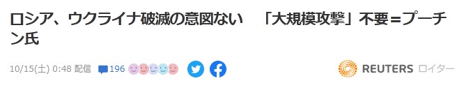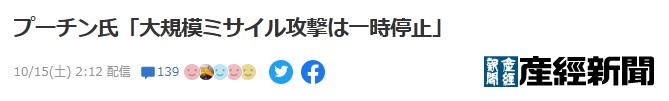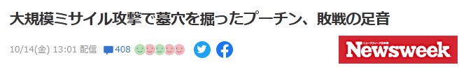 大規模ミサイル攻撃で墓穴を掘ったプーチン、敗戦の足音https://news.yahoo.co.jp/articles/d389c0c098dde10fe89cf2d490e655954236f3ba?page=1